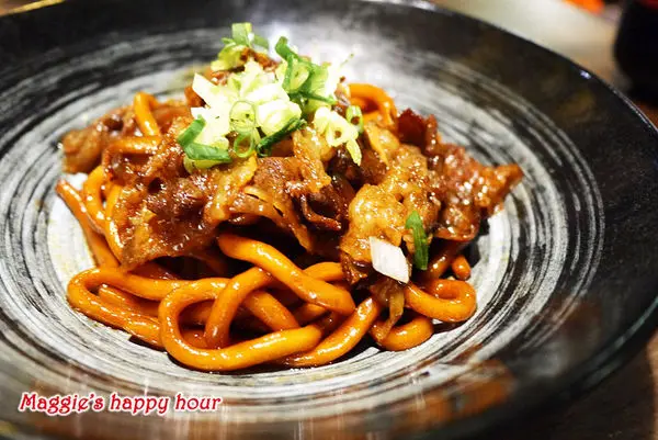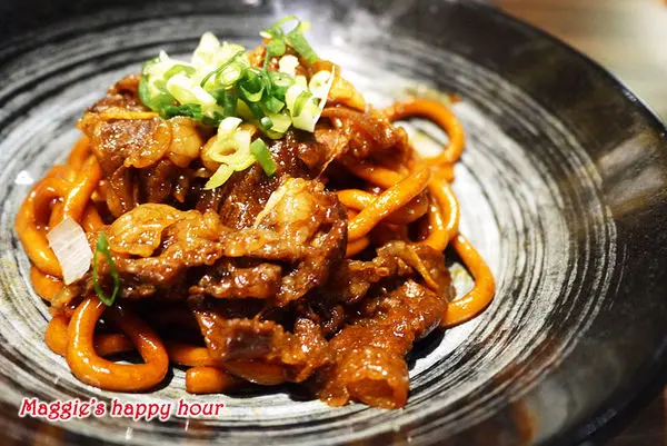 「照燒烏龍麵」可選牛或豬肉來加料,我們選了牛肉來搭配,送上來時看到這深咖啡色的麵條我有點嚇到,這會很鹹吧!我心裡這樣OS!但實際起來味道是偏甜的,我個人沒那麼喜歡,但烏龍麵很Q又帶勁,如果可以把甜度降低些,我個人覺得會更受歡迎。