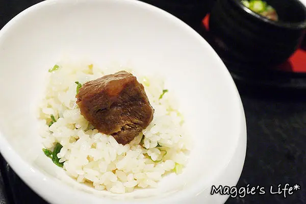釜飯用的是「馥米」加了高湯下去煮多了香氣,配上大量蔥花,拌開來米飯口感鬆軟。