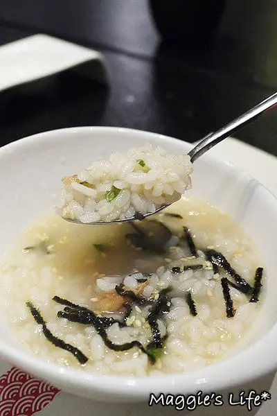這時候就可以把白芝麻和海苔絲放在一起伴著起,增加了雞高湯的濃郁滋味,又是另一重享受。