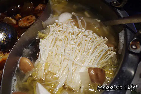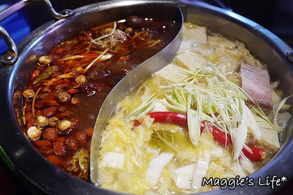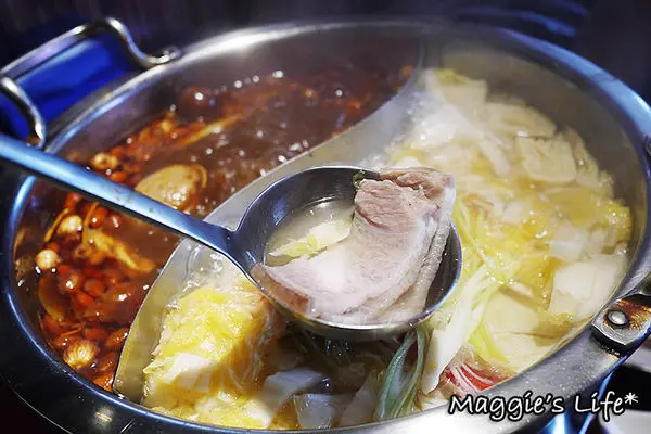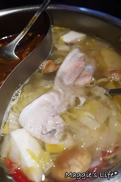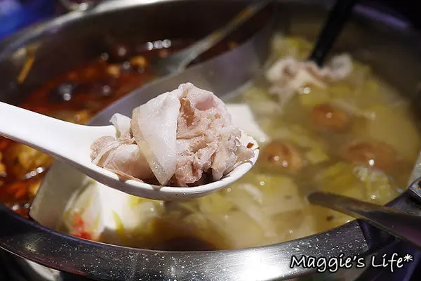 我選了酸菜白肉鍋和御品大汗鍋,這鍋底送上來也太滿了,而且鍋子頗深,隨便一撈都是滿滿的料,可是一點都不含糊。酸菜白菜鍋裡的凍豆腐從頭到尾好像吃不完似的,酸菜也是多到爆炸的程度,我們一次都沒加鍋底,而且還打包回家繼續吃!