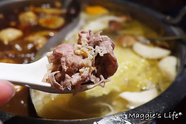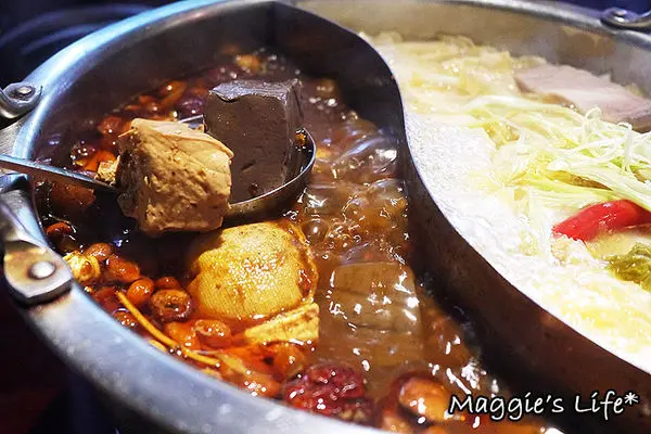 御品大汗鍋是店裡的招牌鍋物,是結合蒙古鍋及麻辣鍋的麻辣藥膳鍋,以大量中藥材和枸杞熬煮湯底,雖然看上去似乎是很辣的程度,但其實吃起來是溫和的麻,辣度對我並不會造成威脅的那種。