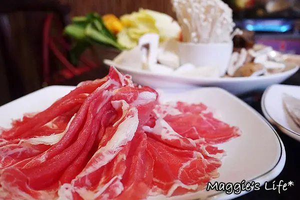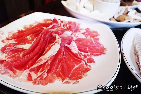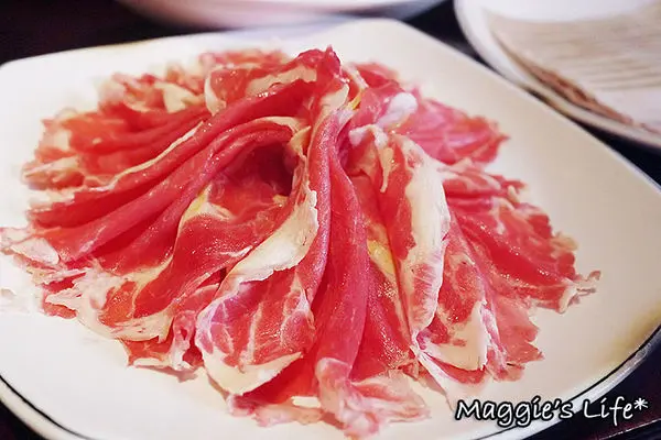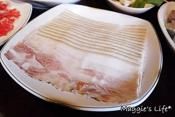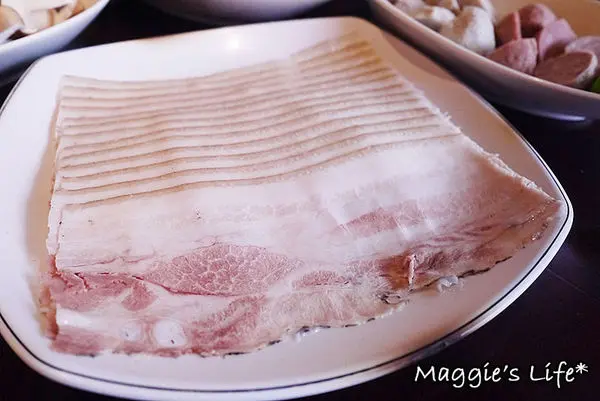 招牌三層肉是店家特選帶有豬軟骨部位的豬五花,親自醃製再切成薄如紙張的0.2cm黃金厚度,在鍋中涮個5秒鐘入口剛剛好,吃起來五花的油脂滑嫩,肉香四溢,尤其放在酸菜白肉鍋裡,那滋味真是無敵好吃啊!我從來沒有吃三層肉停不下來的,今天來饕鍋算是破了我個人的記錄了!