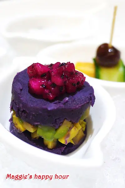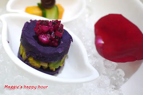 這一道道的精緻美食利用了像是山藥細絲、甜柿、豆腐、芒果、紫芋地瓜等許多天然的食材下去做出口味不同的料理,這跟一般素食會用許多加工食品做出來的偽葷食料理的作法相當不同,每一道都能嚐出食物的天然風味,只靠著主廚豐富的料理手法和對美食的創作出來,更能讓消費者吃出食物的健康和變化,我好喜歡這樣的蔬食料理呢!