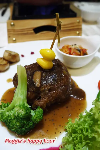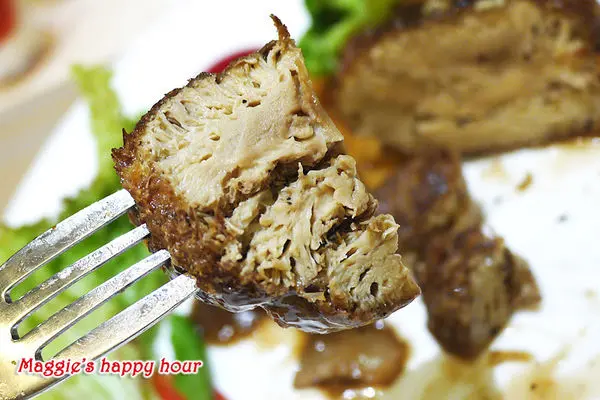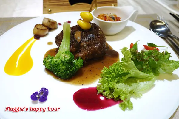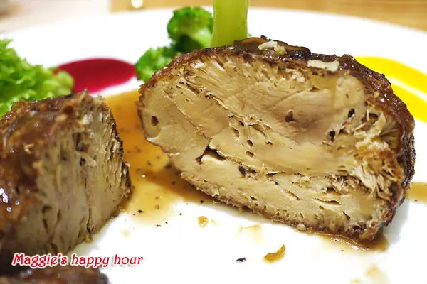 主菜二選一,我選了「巴黎香榭猴菇排」這美麗的拼盤足以吸引人目光,除了中心的猴菇外,外層用了生菜加水果醬汁裝飾,增添了整個盤面的豐盛度。
