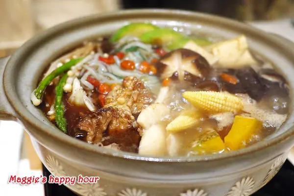主菜則有七種可選擇,我們後來選了「麻油藥膳鍋」,沒想到送上來時陣陣麻油香氣撲鼻而來,裡面的料種類多到讓我們眼花潦亂,豐富的程度超乎想像!