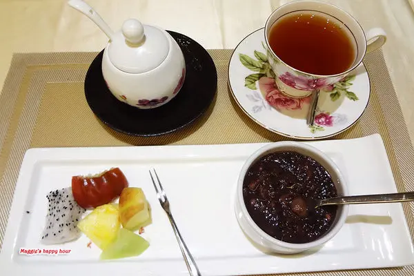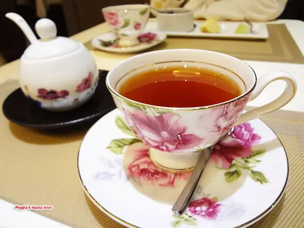 搭配的飲料有咖啡和紅茶,我們都選了紅茶,紅茶端上來時用了漂亮的玫瑰花瓷杯,非常有質感,讓人頓時感覺在喝貴婦下午茶,店內用的紅茶是錫蘭紅茶,也是我喜歡的口味。