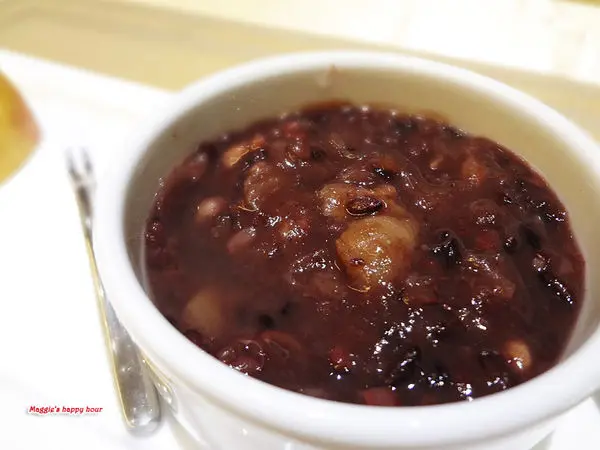 紫米甜粥甜度適中和煮得鬆軟的紅豆及有彈性的紫米,是一道不錯的收尾也很有飽足感。