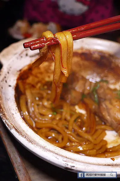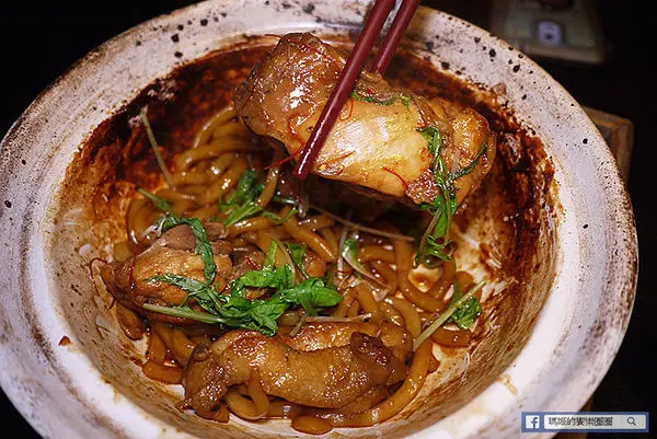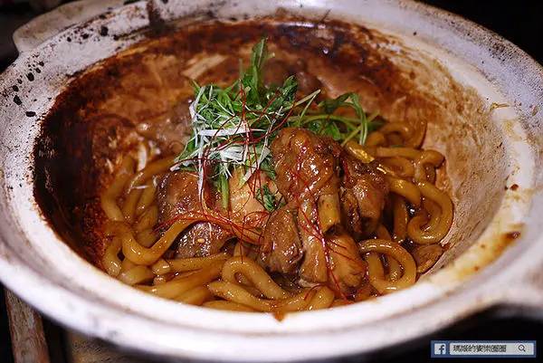 「嫩煎雞腿土鍋燒」240元,光這醬燒的顏色就覺得好入味,底下還有Q彈的烏龍麵襯底哦!