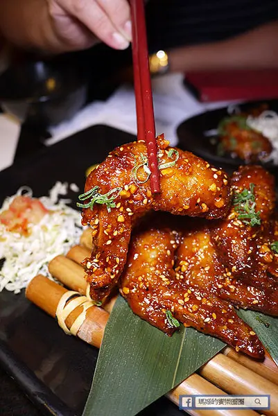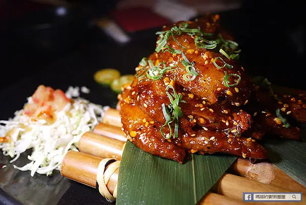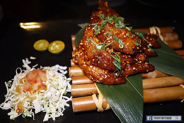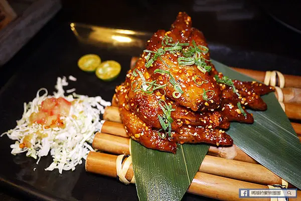 「手羽先醬燒山賊辣味噌」260元,這道算是聊天品酒的美食,鮮嫩雞翅以辣味噌慢烤,烤至入味的口感,帶著微辣的味覺,吮指回味的好滋味,相信也是許多人會點的一道美食