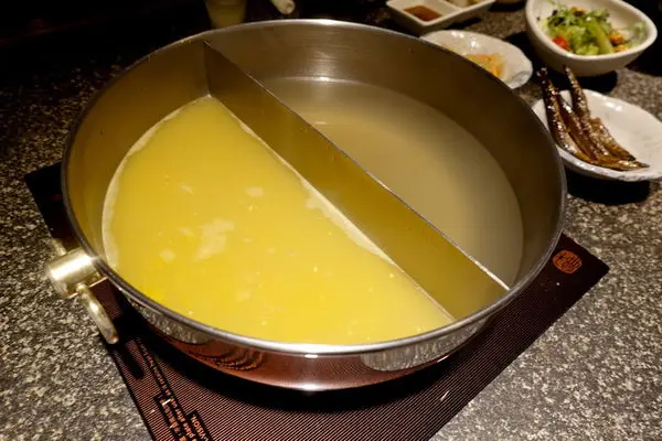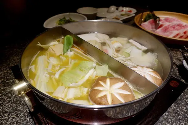 服務生幫忙把蔬菜分別放到兩邊下去煮,