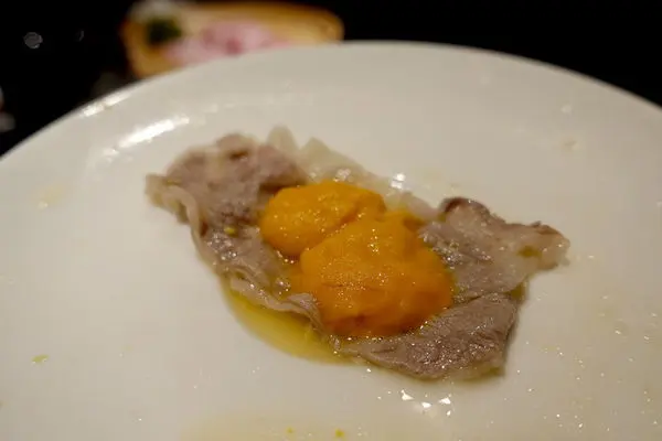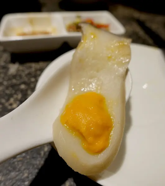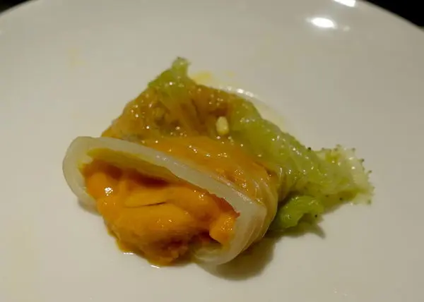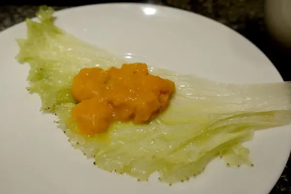 蔬菜煮熟之後直接包生的海膽吃..完全沒有腥味