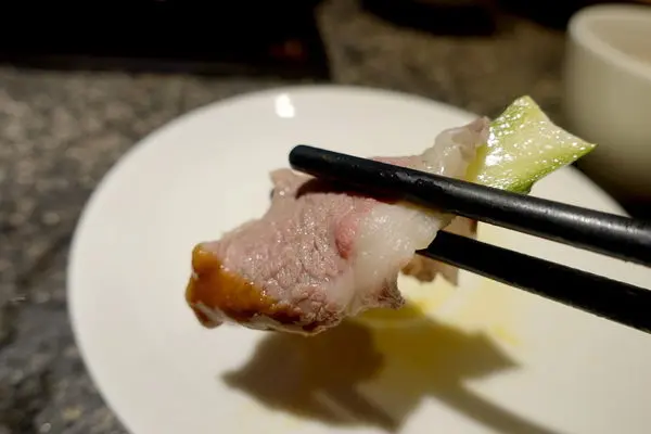 牛肉包蔬菜,沾一點特製醬料就很美味
