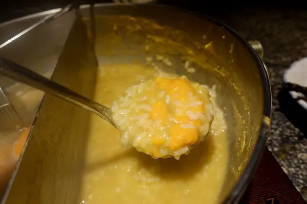 用海膽的鍋底加入新鮮海膽製作超鮮美的雜炊