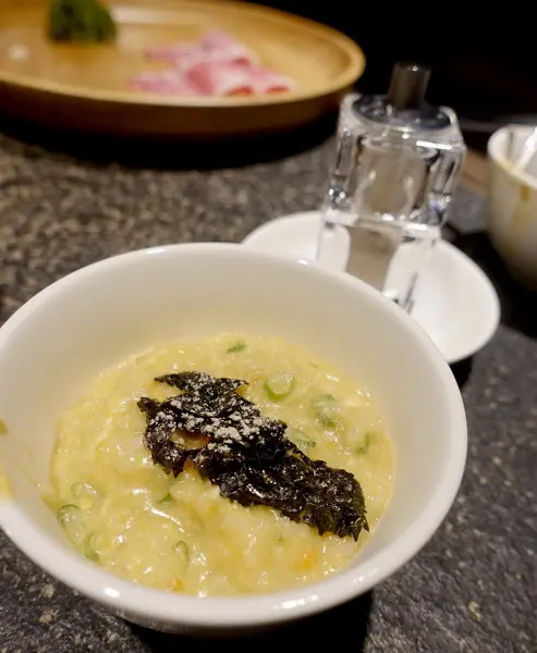 服務生看好像吃得差不多了就準備了雜炊的食材