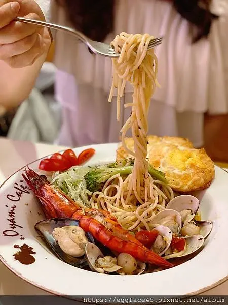這份義大利麵裡,有著滿滿的海鮮食材,