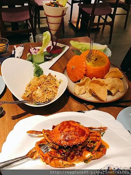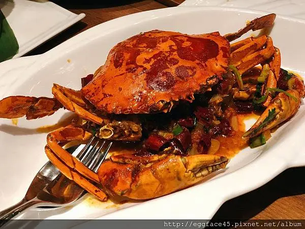 讓蟹肉沾覆著濃郁鮮紅的泰式辣醬汁,