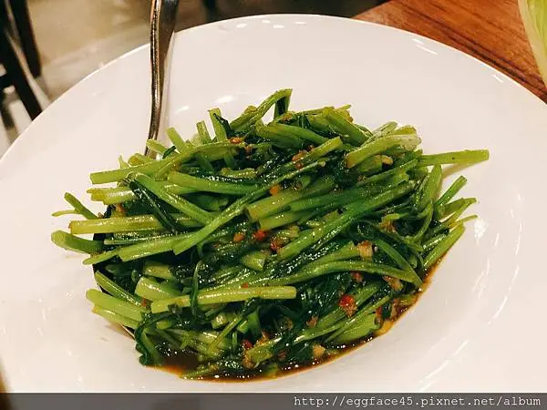 空心菜吸吸了蝦醬的鮮香和微微的辣味,搭配白飯剛剛好。