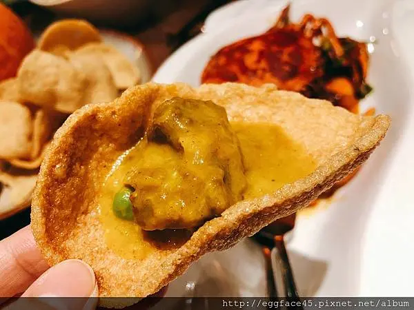 ▼蝦餅搭配咖哩牛肉,香香脆脆又滑嫩。
