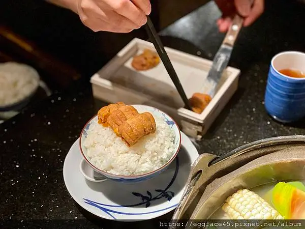 上層還放著金黃色澤的海膽,