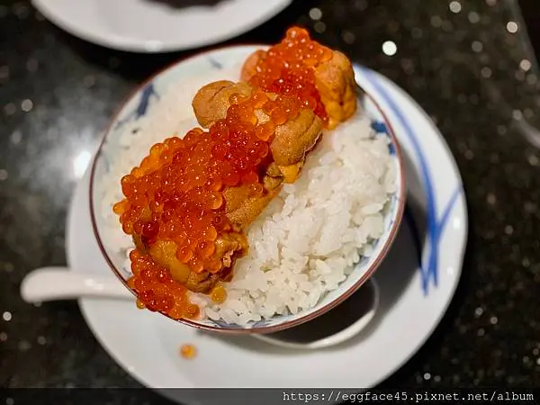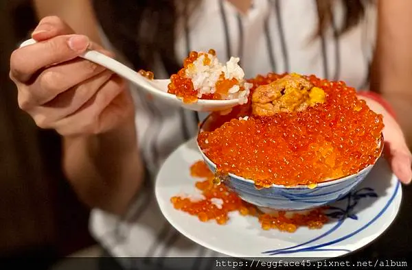 海膽滑順鮮甜,搭上鮭魚卵的鹹香,風味非常迷人!