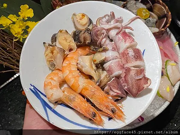 裡頭放滿放好十種海鮮,有:
