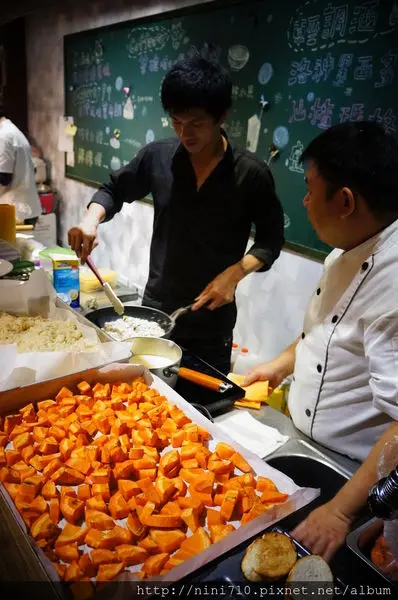 大廚正在製作的特製南瓜鹹派,看起來真是亂美味可口,型男主廚看起來也很可口