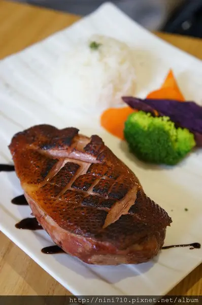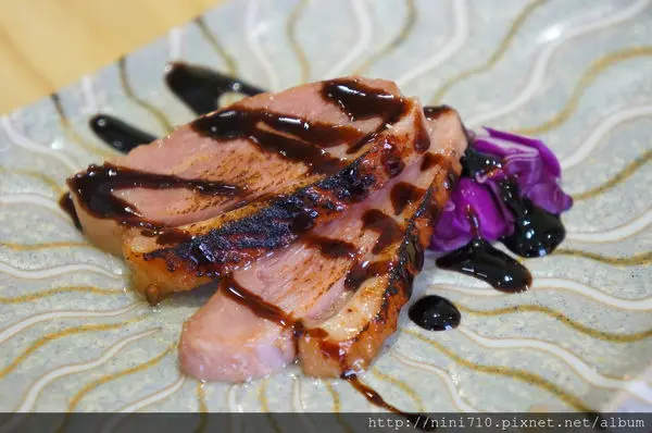 開胃前菜是焦香味十足的鴨胸肉淋上巴薩米克醋,又油又香滋味不錯