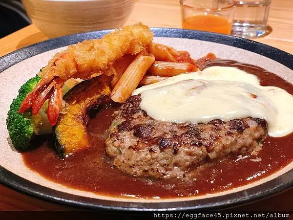 漢堡排豬、牛比例抓得剛剛好,肉質也很鮮美,不會有過多調味,