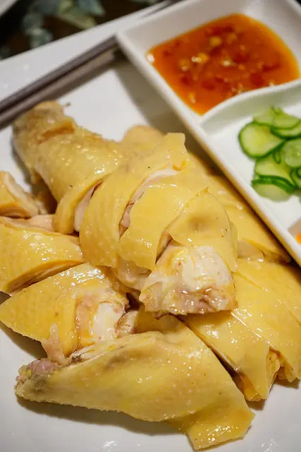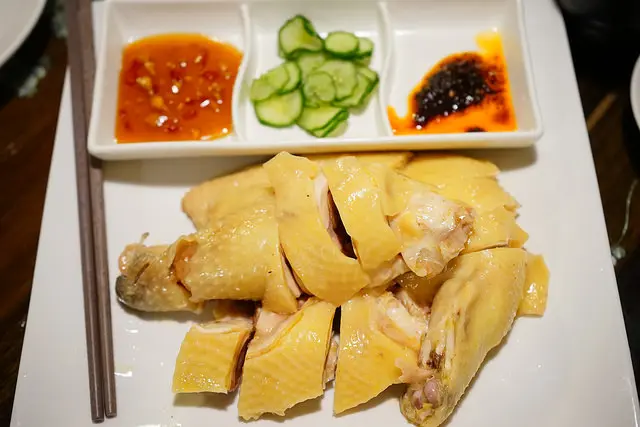 果然肉質甜美滑嫩,雞皮油而不肥,搭配一旁的醃漬微甜小黃瓜也很爽口
