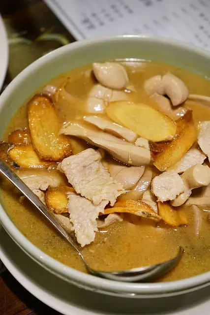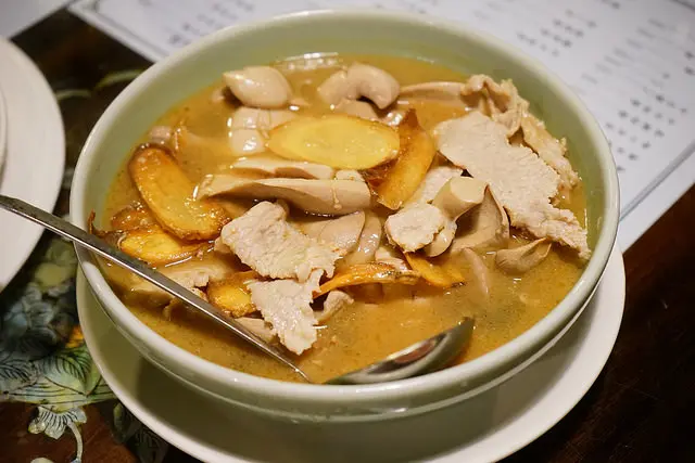 略帶脆口的松阪豬與腰花伴著麻油的香氣,白飯裡淋上一點湯汁也好下飯,我嫌他清淡了點,我喜歡加很多麻油香
