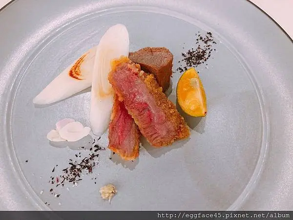 這是我吃過最外酥內軟嫩的炸牛排,超喜歡的!搭配紫蘇鹽或金桔汁風味更佳。