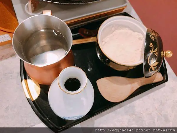 ▼壽喜燒的醬料三寶:水、糖、醬油。