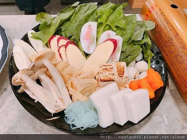 有波菜、大蔥、豆皮、豆腐、小洋蔥、紅甘薯、鴻喜菇、蒟蒻…等,