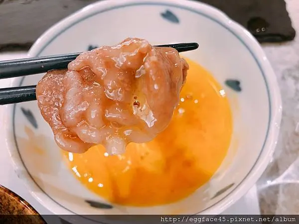 沾覆生雞蛋汁的肉片,肉質超級滑潤,整體的口感和美味更升級,