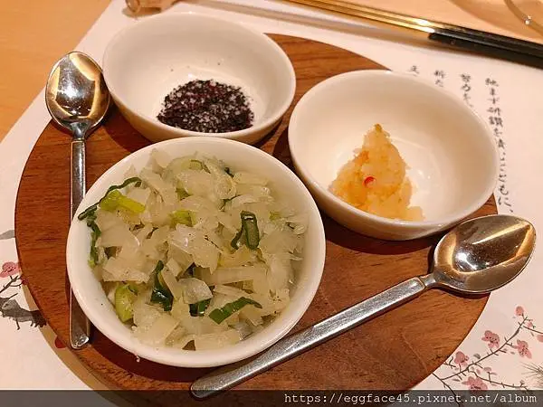 分別是:蔥鹽、紫蘇鹽、柚子胡椒。