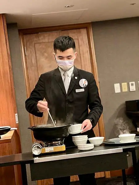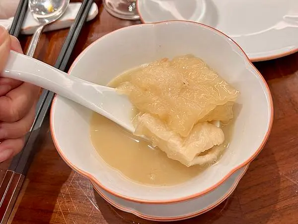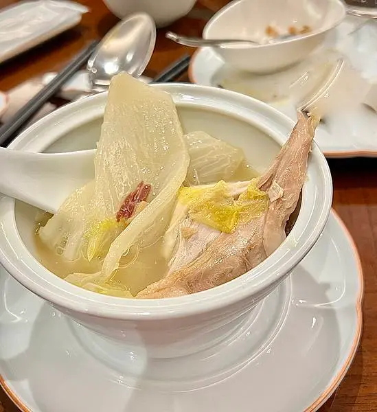 餐前每人先送上一碗熱騰騰的雞清湯;