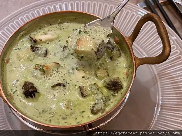 田螺非常Q彈,搭配荷蘭芹奶油醬,