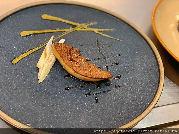 鴨肝送上桌時,已煎至表面焦酥,擺盤也吸睛,