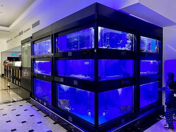 ▼店內設有水族箱,裡頭放置著許多各式的新鮮海產。