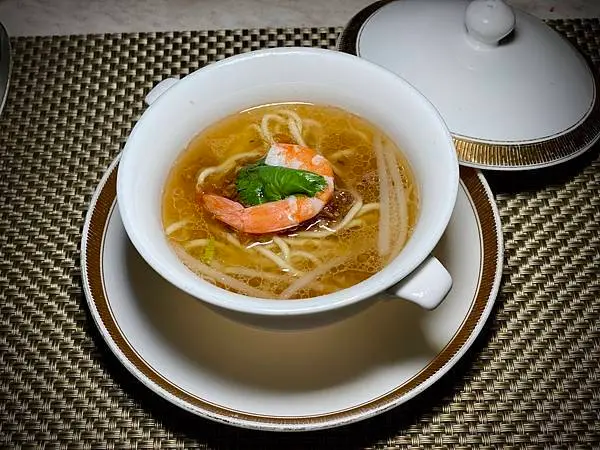 喝一口,排翅細緻軟彈,湯汁鮮美濃郁,銀芽脆口平衡味蕾,