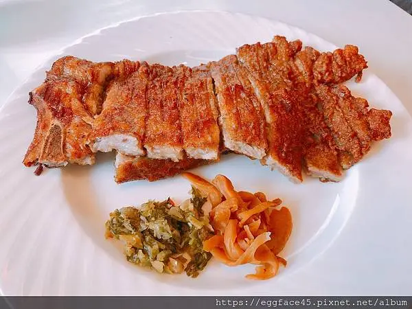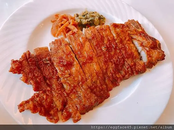 炸至金黃酥脆的排骨,都快比盤子還大了,