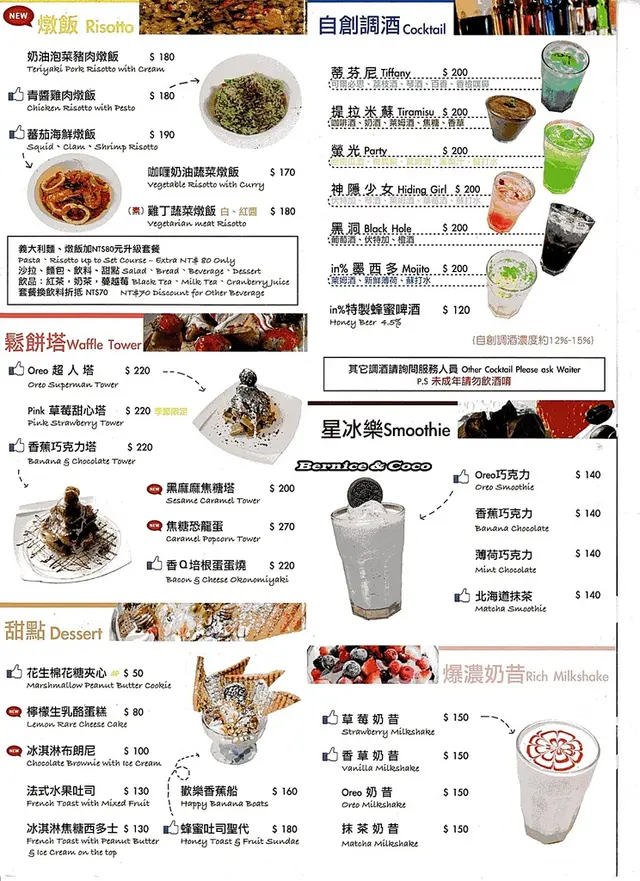 這裡的餐點除了義大利麵 燉飯 三明治 鬆餅等