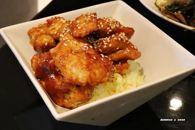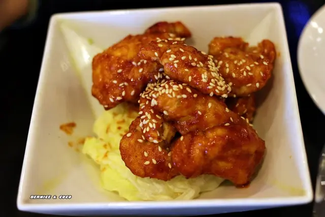先上桌的韓式炸雞底下鋪的是高麗菜