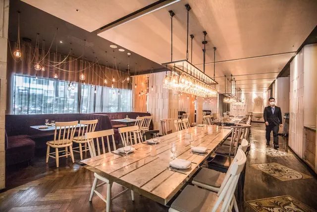 驢子餐廳的用餐空間,牆上掛上許多饒富巧思與故事的手繪壁畫,用大量燈泡營造溫暖黃光,中央以歐式鄉村風的大長桌作為餐廳內的視覺主軸,讓用餐環境多了份溫馨悠閒的氛圍,讓咬咬想到國外電影中聚餐常見的大長桌,親朋好友齊聚大長桌用餐,彼此歡愉暢談分享美食著,光用想像就讓人覺得溫馨熱鬧呀!如此獨具風格的創意裝潢也獲得2015年德國iF室內建築類設計大獎唷