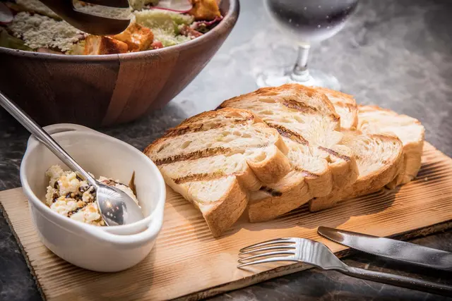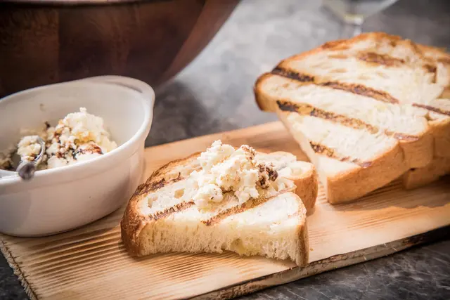 餐前麵包也用JOSPER烤箱烤過,火候拿捏得恰好,切成厚片的法棍麵包表皮酥脆,麵香四溢,搭配的是瑞可達(Ricotta)起士及堅果,瑞可達(Ricotta)起士是雪白色澤質地柔軟細緻,抹上酥脆的麵包,麵粉香乳香兼具,加上堅果硬脆的口感及香氣,入口極富層次口感
