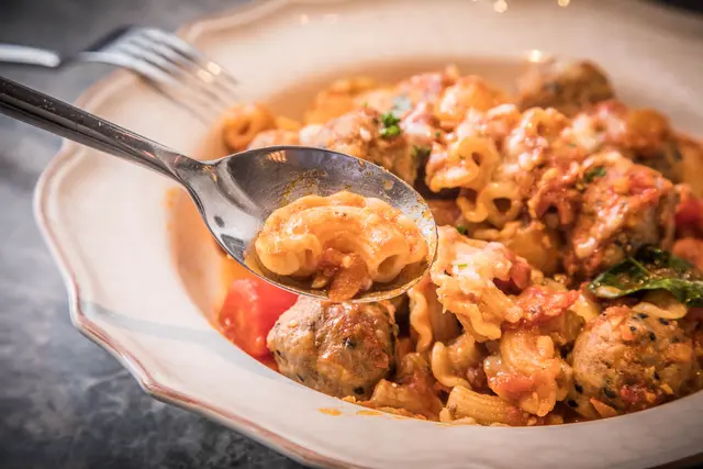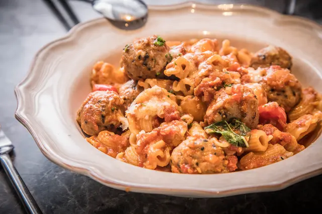 義式茄汁手工豬肉丸雞冠麵