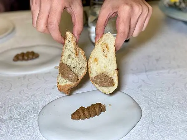 提供兩種口味的麵包搭配黑蒜奶油。
