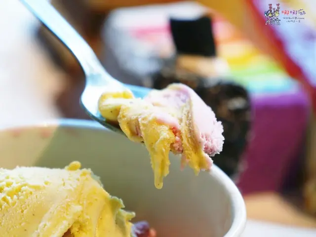 草莓和香草的搭配也蠻搭的,他的香草很明顯的和一般台灣的冰淇淋的香草不同,非常明顯的香草味,淡淡的甜香不需要配其他口味就很好吃,完全就是外面一球最少要一百塊的那種手工冰淇淋才有的水準。草莓的話就是酸甜酸甜的,但是不會太過刺激,整體而言味道是溫和的,感覺就是可以在花園裡面拿本書,安安靜靜的享受一份冰淇淋的悠閒感。