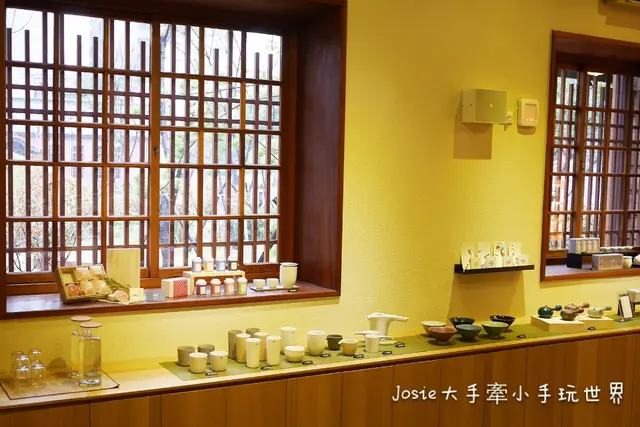 窗邊擺設了一些日式茶具和品牌茶葉販售