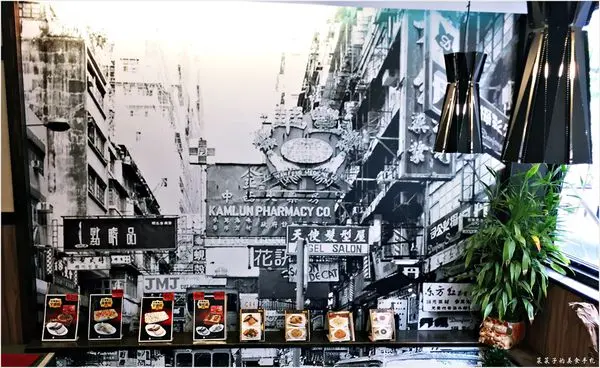 樓梯間的牆景是香港街景牌樓的壁貼,